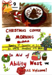 The guys in the Ability West Hub in Headford are holding a Christmas Coffee Morning and you – and a friend! – are invited! The venue is the GRETB premises